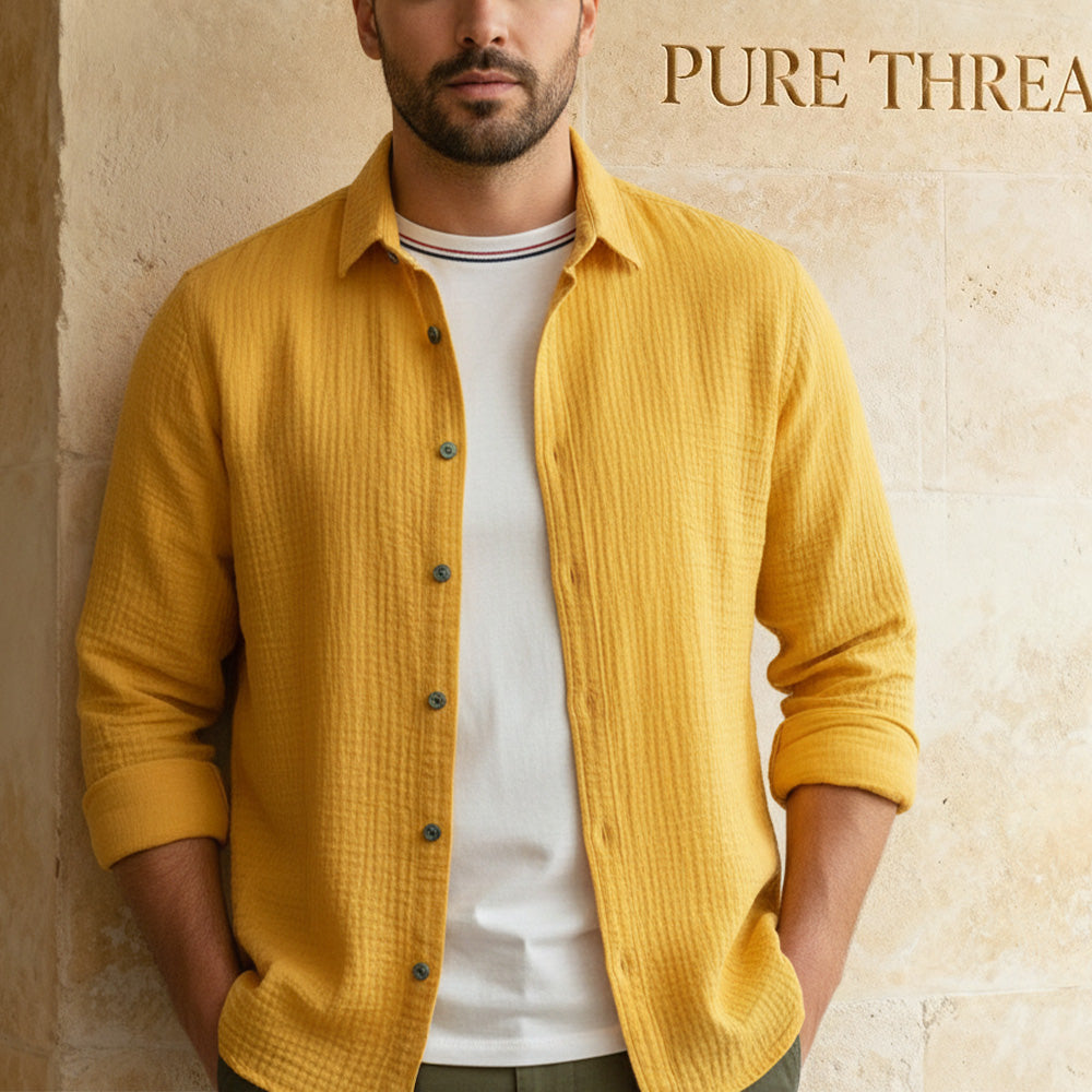 Classic 100% Cotton Button-Down Shirt – Ultra-Light, Textured Shirt