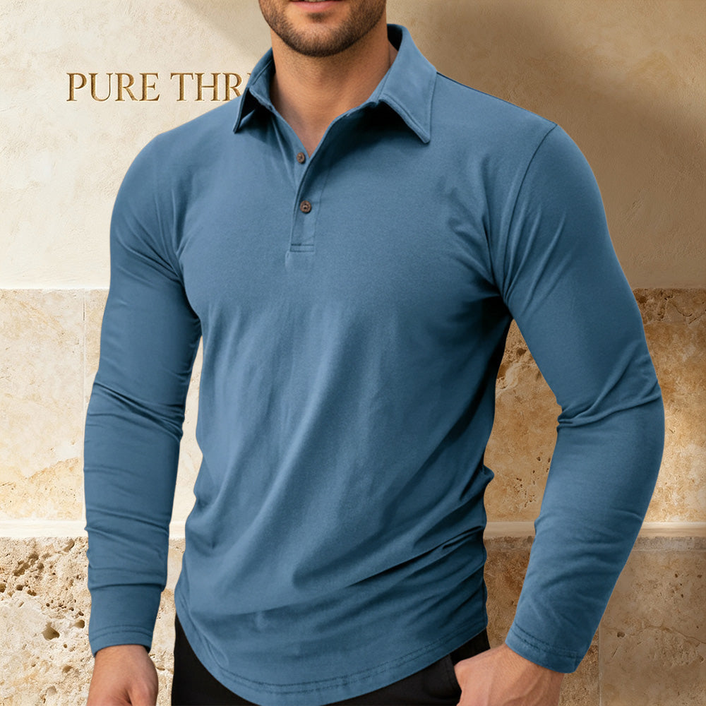Tailored from a premium cotton-blend fabric, this long-sleeve polo tee delivers all-day softness, stretch, and breathability. Its sleek placket, smooth drape, and modern silhouette make it a year-round go-to—perfect for layering, casual outings, or elevated everyday style.