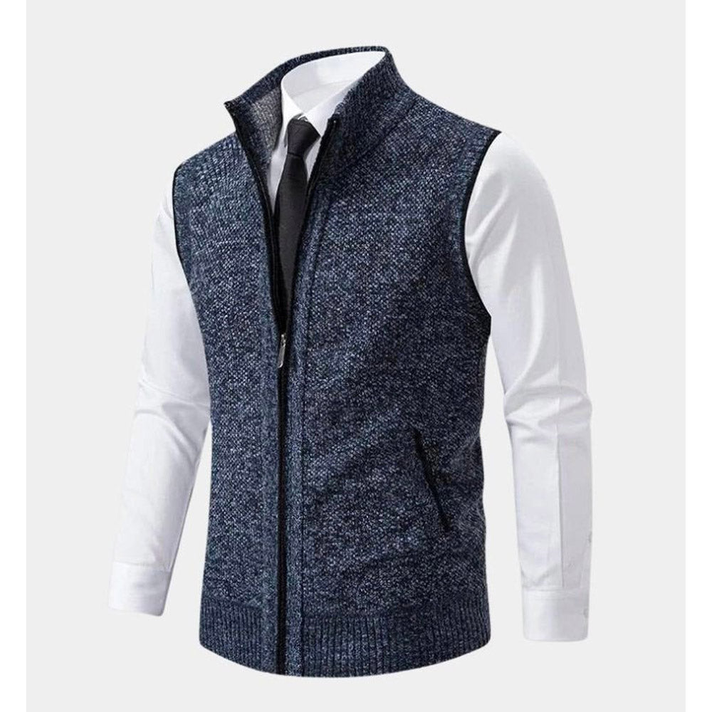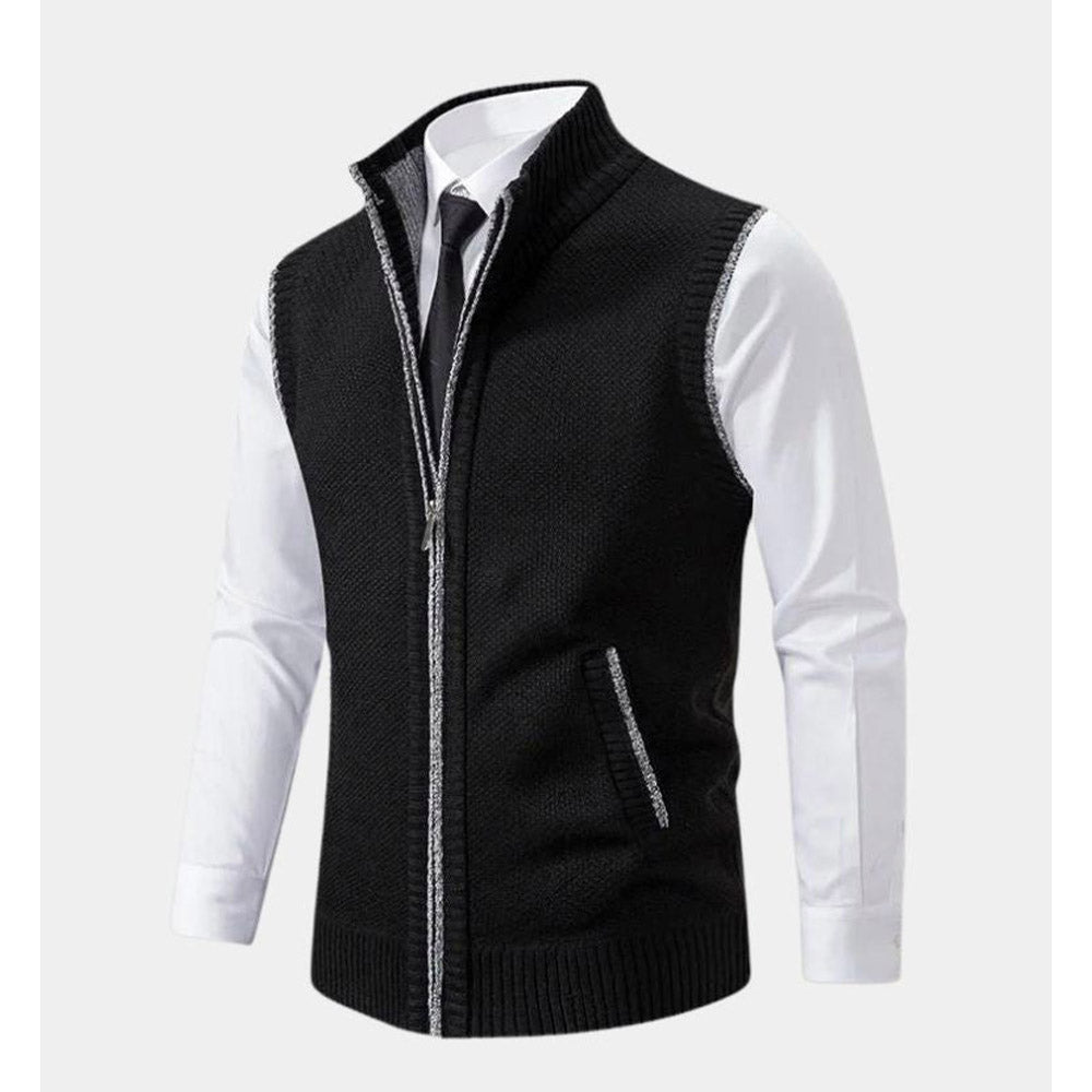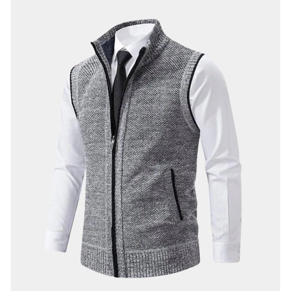Crafted for a sharp, tailored look, this knit vest brings refined layering to modern wardrobes. The textured surface and clean zip-front design create a sleek silhouette that works seamlessly over shirts or under jackets. Ideal for polished everyday wear and smart-casual styling.
