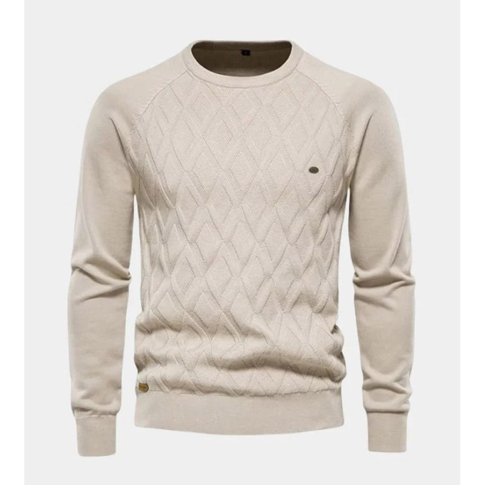 Stitched with understated elegance, this sweater blends refined texture with a clean, modern silhouette. The subtle diamond-knit pattern adds depth without overpowering, making it an effortless choice for elevated everyday wear.